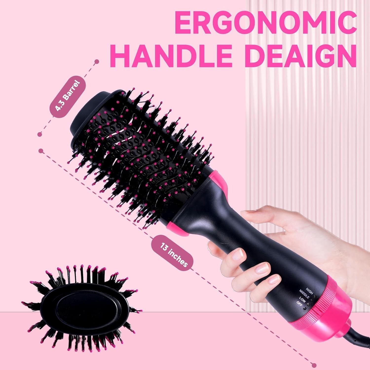 - Salon Smoothness 4-in-1 design combines hair dryer, hot air brush, styler and volumizer in one convenient tool for complete hair styling. The oval barrel smooths strands while tufted bristles boost volume—no separate tools needed!